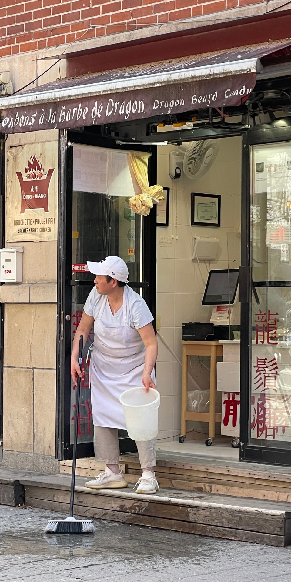 Auch in Chinatown wurde heute gewienert und geschrubbt. Beim chinesischen Zuckerbäcker, wo es „Drachenbart“ und andere Süßigkeiten zu kaufen gibt, wird für einen Aufpreis nebenher noch der Lohnsteuerausgleich gemacht. Auch das ist Montreal.