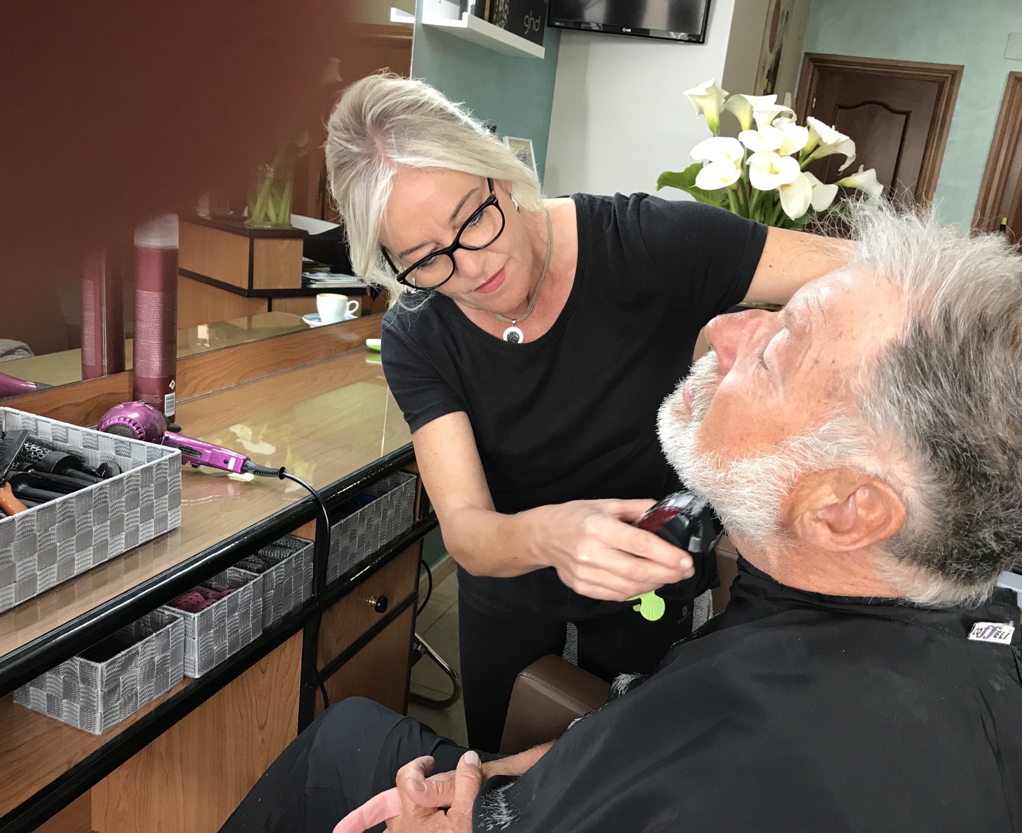 Die Apothekerin, die es sich nicht nehmen lässt, mit vor die Tür zu gehen, damit du ja den Camino nicht verpasst.