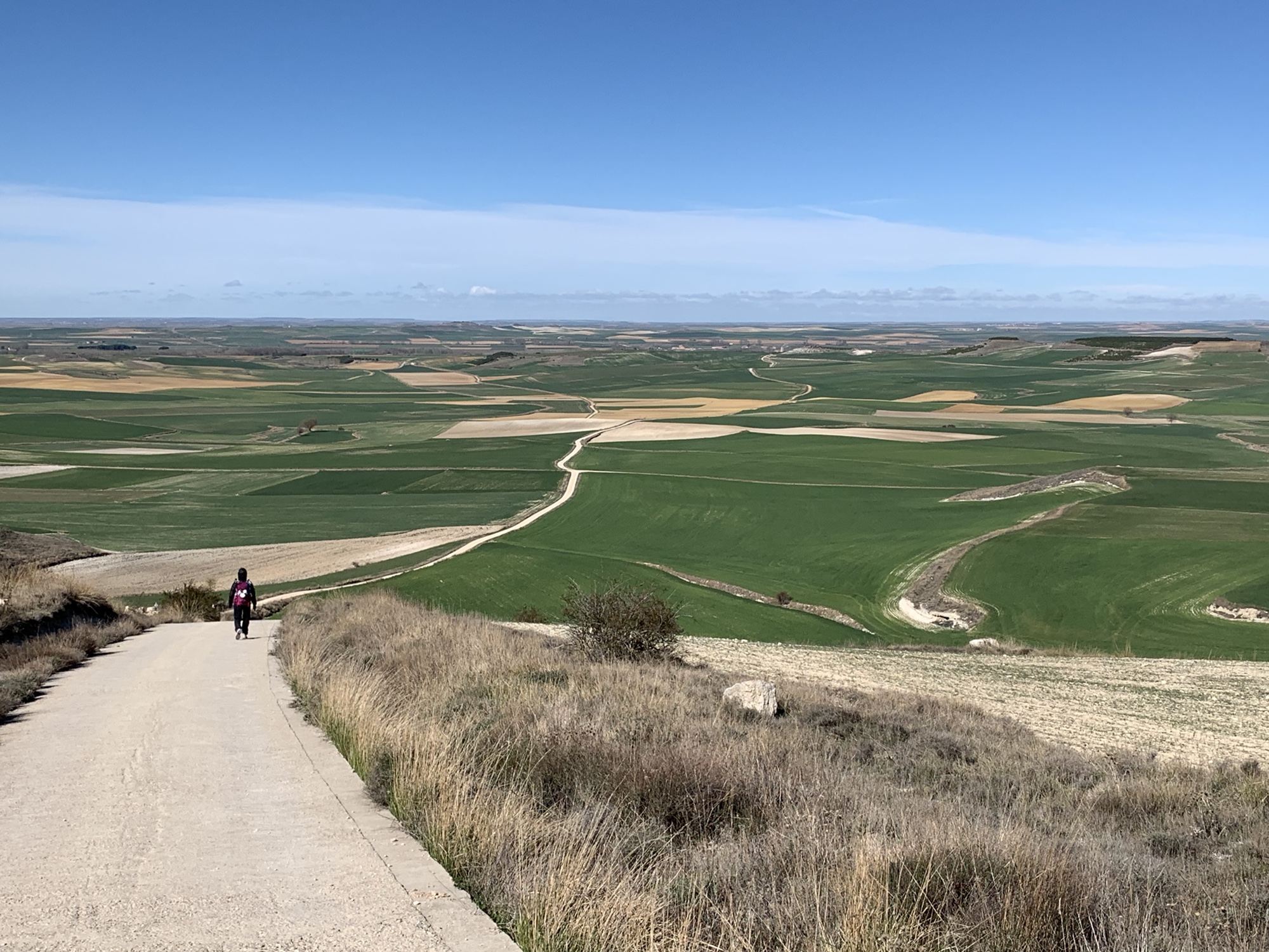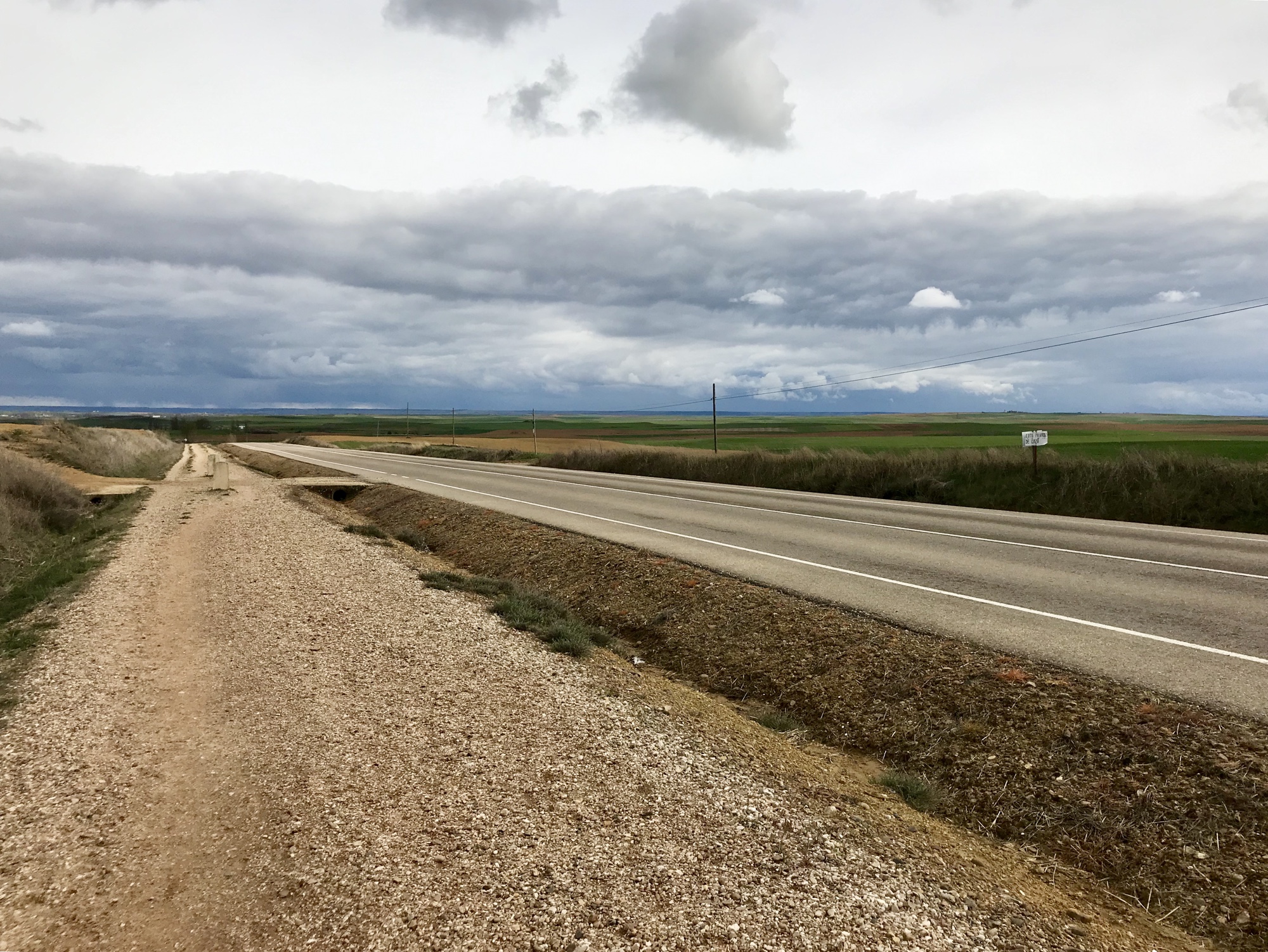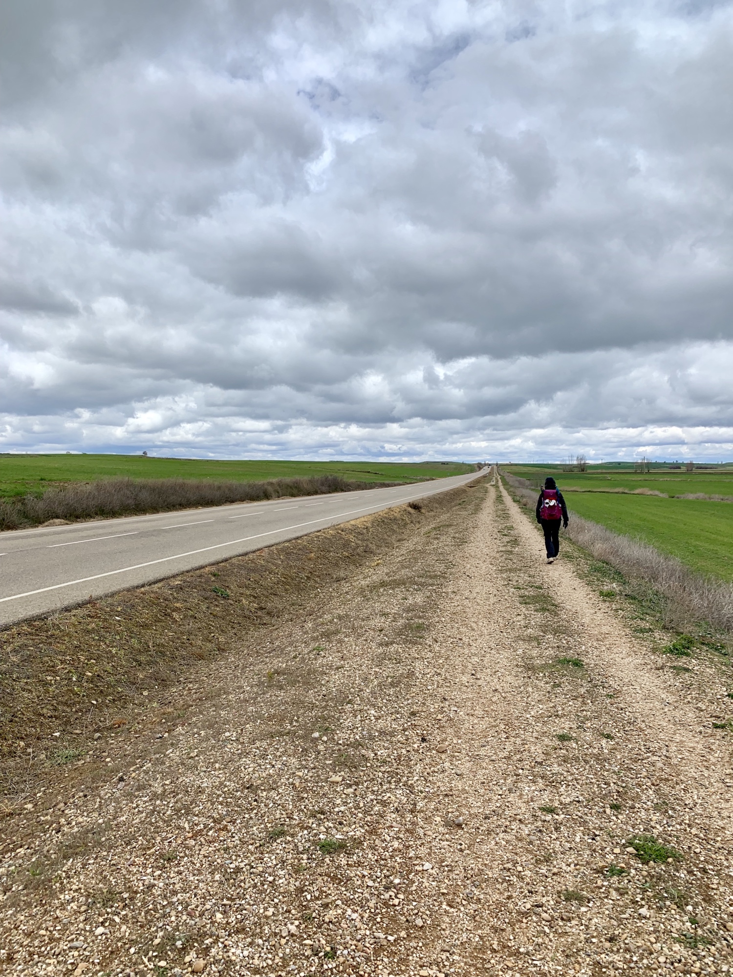 Als 24jähriger Jungspund habe ich insgesamt fünf Jahre in der westkanadischen Prärieprovinz Manitoba gelebt. Was mir bis heute in Erinnerung geblieben ist, sind die unendlich scheinende Weite und der unverstellte Blick bis zum Horizont. Heute gab es auf der 18 Kilometer langen Strecke von Sahagún nach Calzadilla de los Hermanillos eine Art Déjà-Vue mit Manitoba.
