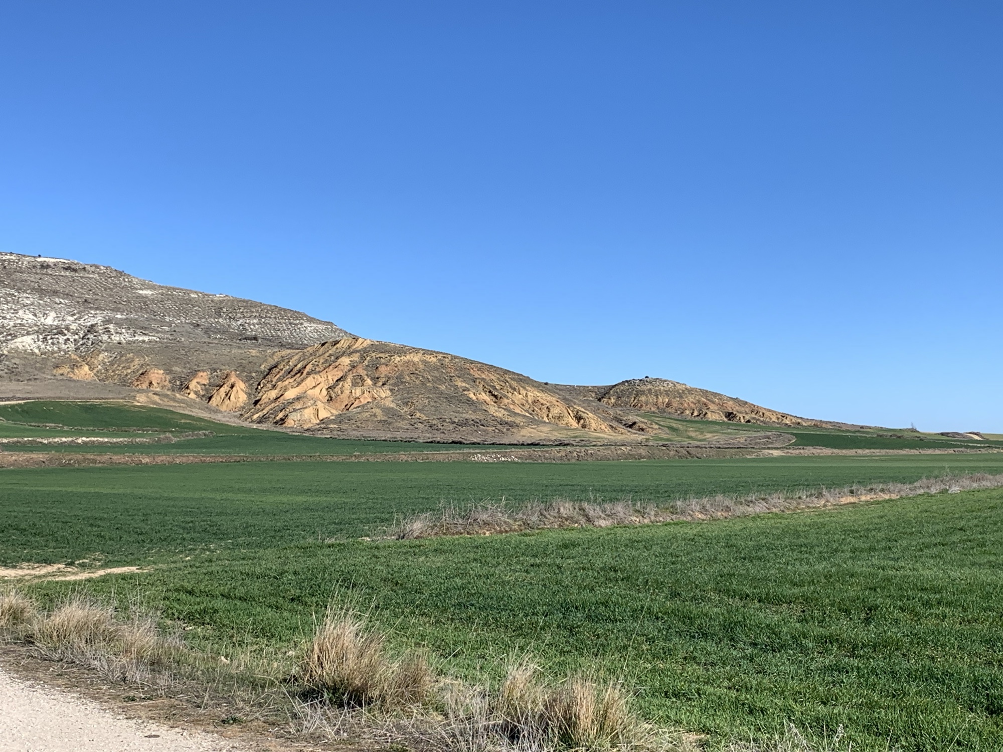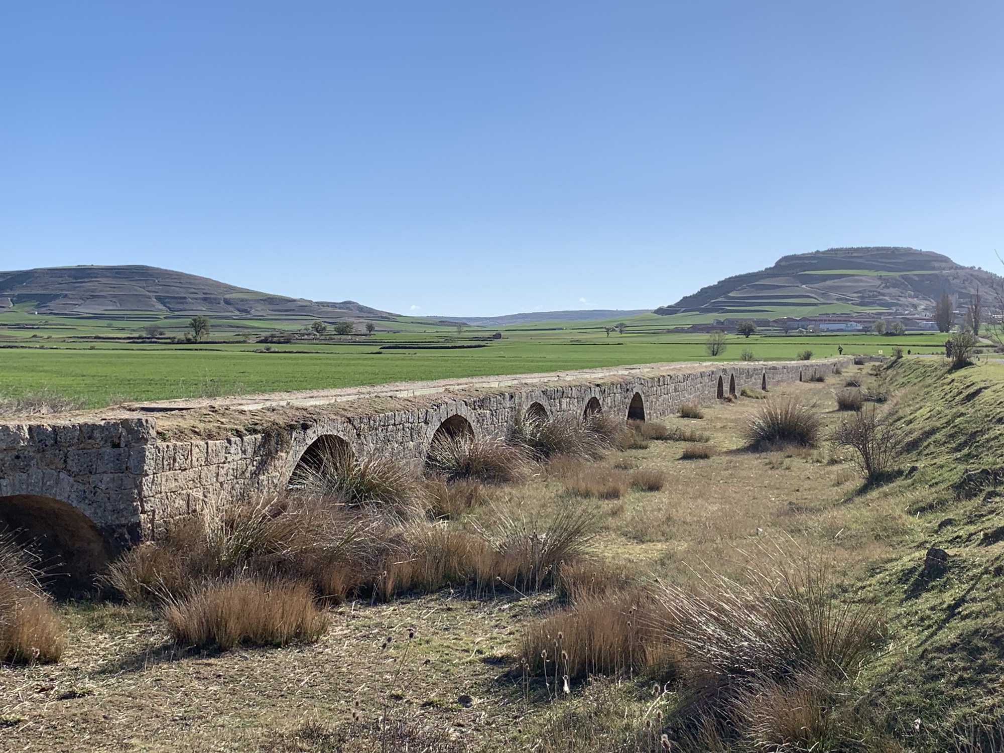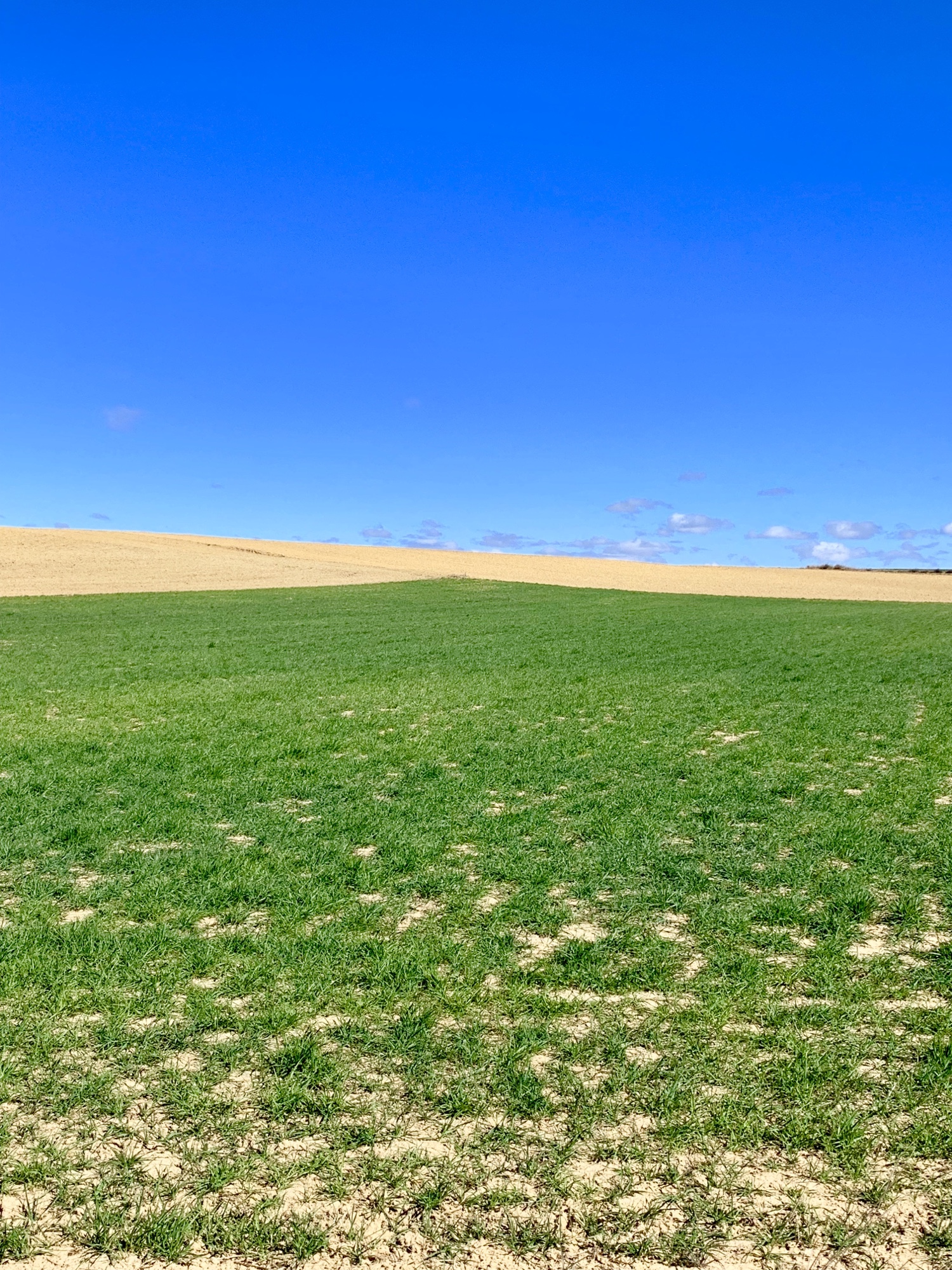 Als 24jähriger Jungspund habe ich insgesamt fünf Jahre in der westkanadischen Prärieprovinz Manitoba gelebt. Was mir bis heute in Erinnerung geblieben ist, sind die unendlich scheinende Weite und der unverstellte Blick bis zum Horizont. Heute gab es auf der 18 Kilometer langen Strecke von Sahagún nach Calzadilla de los Hermanillos eine Art Déjà-Vue mit Manitoba.