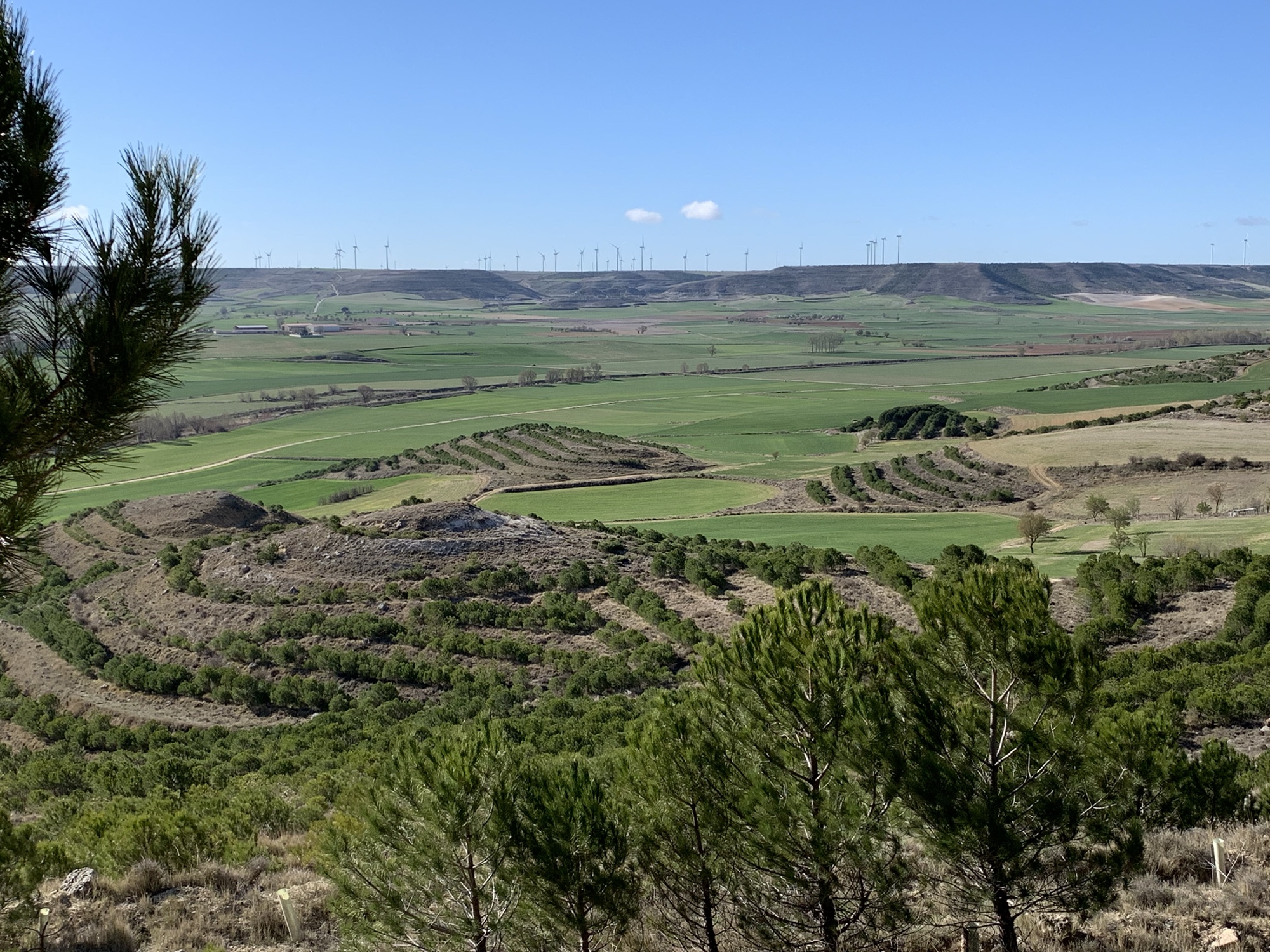 Auch wenn die heutige Strecke fürs Auge nicht besonders viel hergab, war es wiederum eine wahre Freude, in den taufrischen Morgen hinein zu wandern, vorbei an alten Steineichen, frisch gepflügten Äckern und sattgrünen Wiesen.