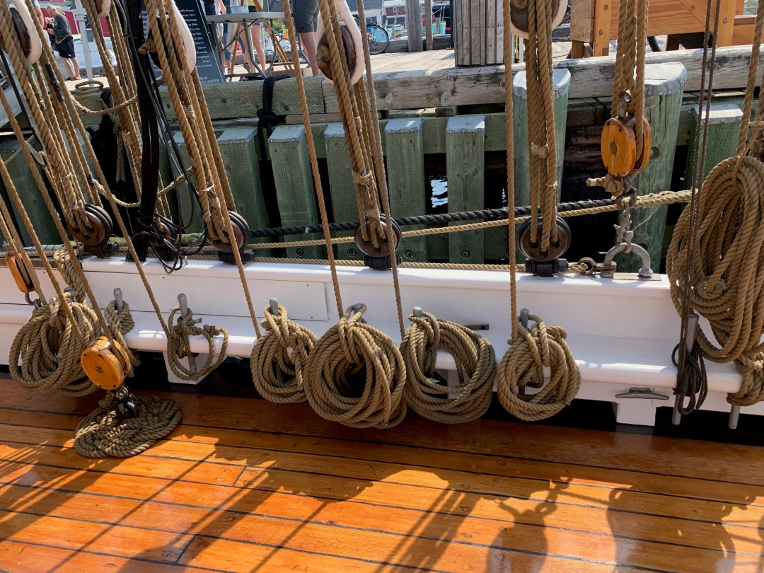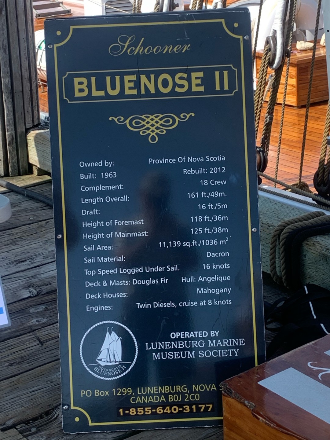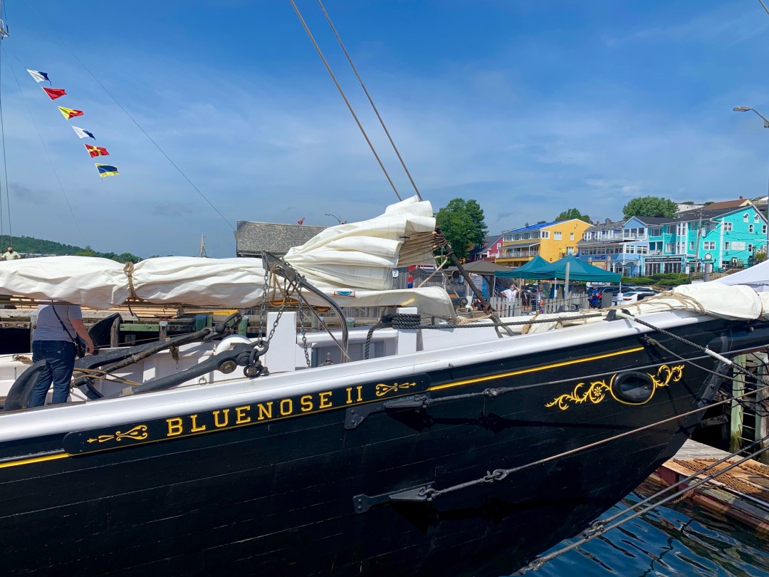Eigentlich heißt das Schiff “Bluenose II”, aber die römische Ziffer hinter dem Namen verschweigen Kanadier gerne. Die “Bluenose I” ist nämlich irgendwo in der Karibik zerschellt und auf Grund gelaufen. Darüber redet man halt nicht so gern.