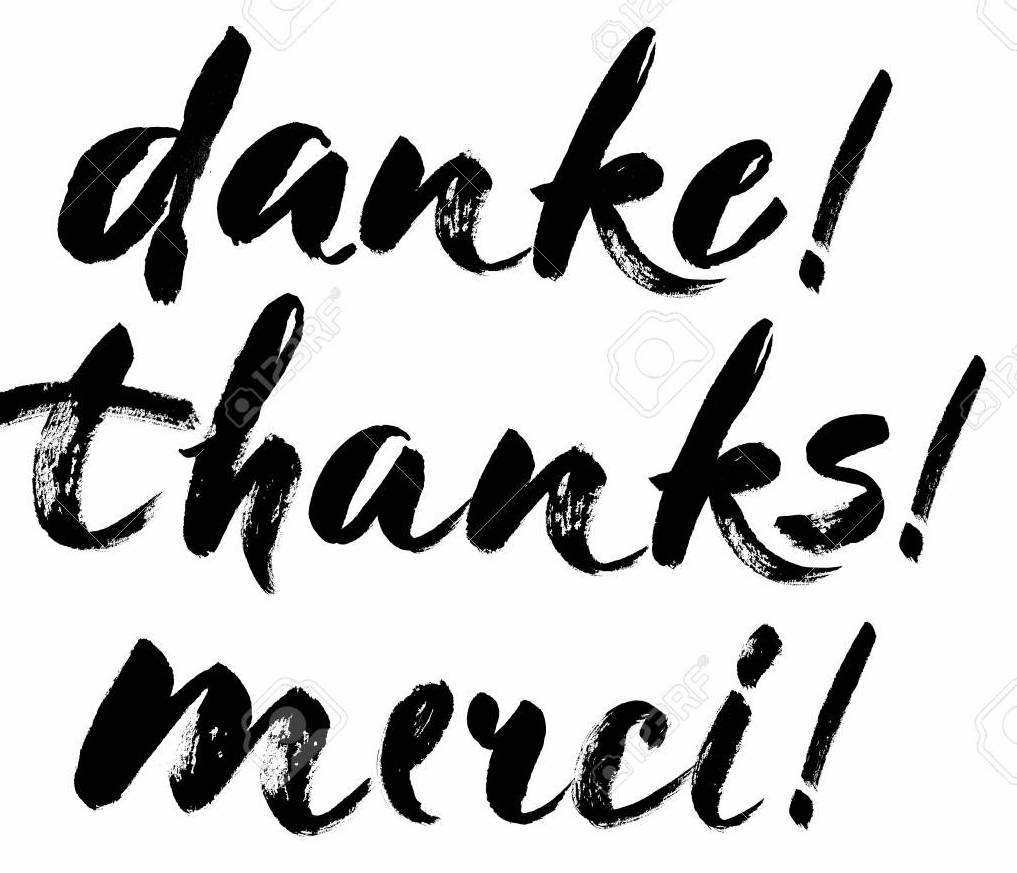 Thank you lettering in english, french, german Thanks, Merci, Danke Hand drawn vector phrase. Handwritten modern brush calligraphy for invitation and greeting card, t-shirt, prints and posters